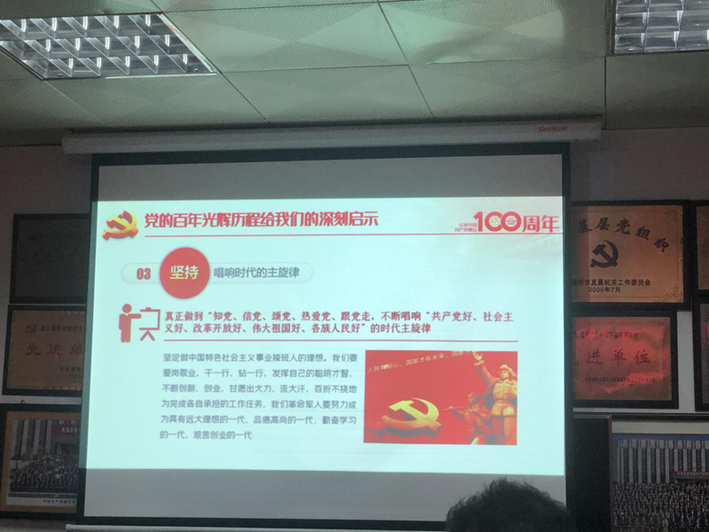 黨課詳述了黨的百年光輝歷程,強(qiáng)調(diào)沒有共產(chǎn)黨就沒有新中國,號召全體黨員堅(jiān)持和堅(jiān)信黨的領(lǐng)導(dǎo)、堅(jiān)持走中國特色社會主義道路、堅(jiān)持唱響時代的主旋律。