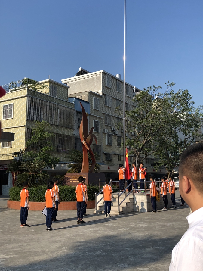 9月30日上午8時,在仙滘?qū)W校操場上,公司干部職工代表同市掛鉤單位和區(qū)掛鉤單位、學(xué)校全體師生參加升國旗儀式,伴隨著莊嚴雄壯的國歌聲,鮮艷的五星紅旗冉冉升起,大家紛紛行使注目禮,凝望著高高飄揚的五星紅旗,懷著敬意和自豪的心情高唱國歌,表現(xiàn)濃濃的愛國之情。
