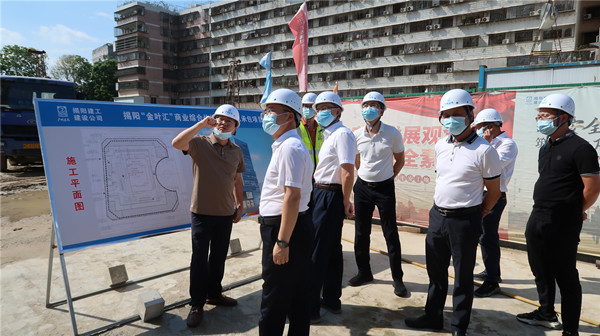 2022年9月26日,市政府副市長羅毅一行到揭陽“金葉匯”商業(yè)綜合體項目工地視察,在現(xiàn)場聽取市金葉公司黨支部書記、董事長、總經(jīng)理卓少琳關于“金葉匯”建設情況的匯報,詳細詢問項目施工進度、施工質(zhì)量、安全生產(chǎn)工作情況,要求進一步創(chuàng)新工作舉措,落實安全生產(chǎn)、文明施工,嚴把工程質(zhì)量關,在保證質(zhì)量的前提下加快工程進度,確保早日完成項目建設。